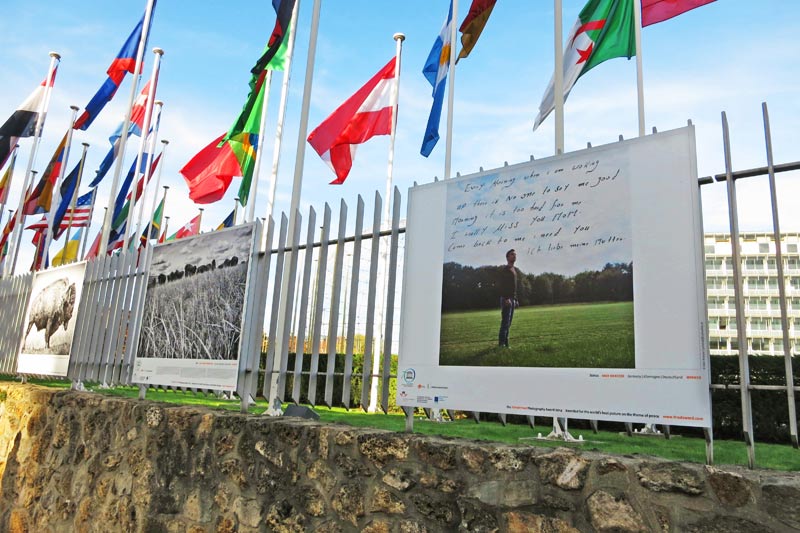 Paris, France This was FRIDAY, 31 October in Paris: Opening of the Exhibition CULTIVATING A CULTURE OF PEACE It was as beautiful a late October afternoon as could possibly be in Paris – 26 degrees and blue skies. Around 13:30 Madame Irina Bokova, Director General of UNESCO, entered the lobby of UNESCO’s headquarters in Paris to open, first, an exhibition to remember Nelson Mandela's life, and then our exhibition ‘CULTIVATING A CULTURE OF PEACE – The Alfred Fried Photography Award, an exhibition to celebrate the 70th anniversary of UNESCO’. The exhibition is located at the Avenue Suffren entrance and, together with the Mandela show, marks the start of the celebrations to honour the 70th anniversary of UNESCO. 18 of the 21 shortlisted works were selected. The exhibition will run until 31 December 2014. In the presence of two of the Fried Peace Medal winners, Ann-Christine Woehrl (who flew in from Berlin) and Davide Tremolada (who travelled from Milan to Paris); of UNESCO's Assistant Director General, Eric Falt; the Austrian Ambassador to UNESCO, Harald Stranzl, and Excellencies from South Africa and Russia, I had the opportunity of explaining to Madame Bokova the concept and intentions of calling on photographers to answer the question, What Does Peace Look Like? A deceptively simple question with no easy answers. I feel honoured that in her answer Madame Director General Bokova welcomed this initiative enthusiastically, encouraging us to come back to Paris in one year at the end of the 70th anniversary celebrations with next year’s Fried Photography Award images. I brought Madame Bokova's words to the attention of Assistant Director General, Eric Falt, to ask if this could fit into the calendar of events to come – and he answered that it would not only be very desirable but most likely doable. Personally speaking I think the exhibition looks truly great and from what I noticed the images make people stop, look and read. For making it happen – and it was a veryveryvery narrow schedule – I have to thank Gerhard Hinterleitner and Peter Kurz of Cyberlab for the prints, Barbara Trionfi and Christiane Klint at the International Press Institute for ‘some funds’, Brigitte Scott who translated all text pro bono, as did Sandra Wilfinger-Bak who proofread the German text, Doris Wallner-Boesmueller and Helmut Urbanec at Boesmueller who printed the catalogue for a lower price, and Tilli Spitzer, who drove the exhibition plates and catalogues from Vienna to Paris to hand them over to UNESCO just in time. I thank Martin Ackerl and Birgit Hofbauer for putting in nightshifts to create plates and catalogue and Johanna Reithmayer for coordinating it all. AND Silvia Lammerhuber for her ongoing generosity to encourage us to find the capacity for these extra miles in our busy publishing house and for the financial support – Silvia has become the guardian angel of the Alfred Fried Photography Award, in the word's true sense. Collaboration with UNESCO could not have been better, with Armelle Arrou – responsible for ‘everything’, Pauline Vallette for tying up all loose ends, Ian Denison for making the catalogues available at the UNESCO bookstore, Carlos Gangoso for hanging the exhibition – and most importantly our jury member, Eric Falt, the project's guardian angel at UNESCO. Last but not least: ALL WINNERS AND SHORTLISTED PHOTOGRAPHERS. THANK YOU ALL.