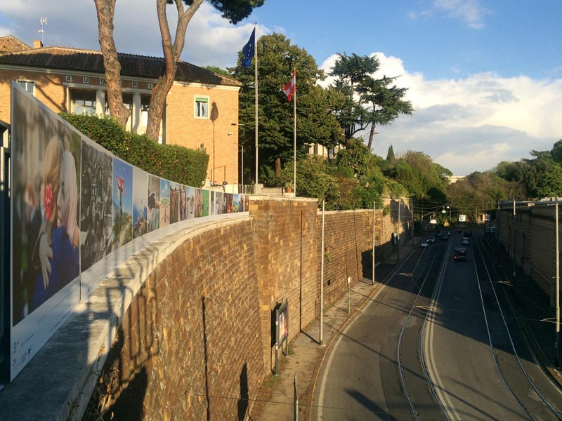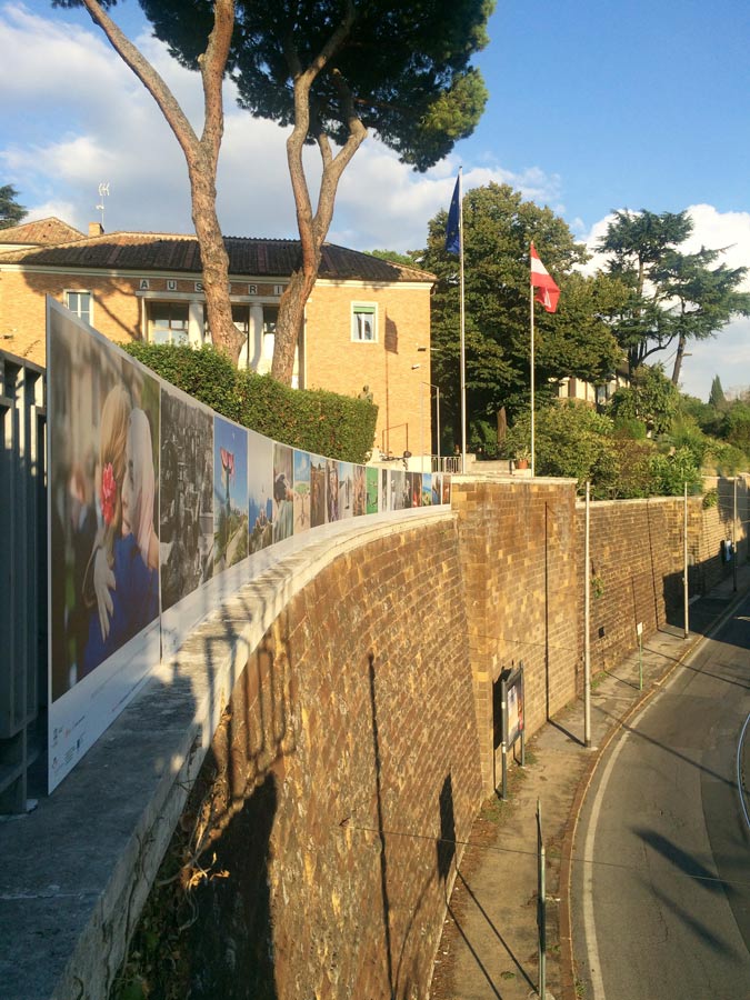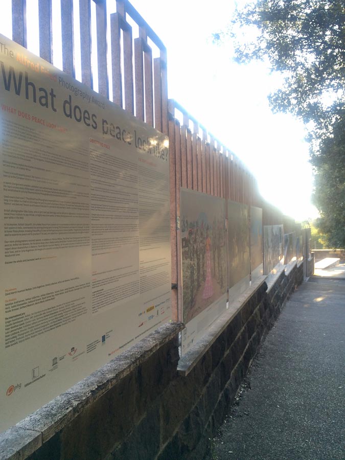 (ANSA) - ROMA, 23 SET - "What does peace look like?". A mostrare a visitatori e passanti come si può immaginare la pace sono fotografi che hanno fermato per sempre situazioni reali o possibili oltre lo sguardo comune, che rappresentano la chiave di una riflessione sulla conciliazione dei popoli e sul futuro dell'umanità. Il Forum Austriaco di Cultura a Roma porta in Italia le immagini finaliste della passata edizione dell'Alfred Fried Photography Award, il concorso internazionale ideato da Lois Lammerhuber che dal 2013, in collaborazione con l'UNESCO, premia le migliori foto sul tema della pace, ricordando l'attivista e scrittore austriaco Premio Nobel nel 1911. Le foto sono esposte fino al 7 ottobre 2016 nella mostra "Obiettivo Pace", allestita lungo i profili perimetrali dell'istituto, nella convinzione che la pace sia un bene comune che deve essere accessibile a tutti e che la fotografia possa rafforzare una cultura globale di armonia e concordia tra gli esseri umani. Non servono parole: un'immagine può essere molto più efficace. Come "Look at me, I am beautiful", la foto scattata da Patricia Willocq vincitrice del premio nell'edizione 2015: una donna con un vestito colorato che sorride guardando il bambino che tiene tra le braccia, circondata da sei militari armati sull'attenti. Nel 2015 hanno partecipato al concorso fotografi provenienti da 121 Paesi del mondo, prevalentemente da Brasile, India e Germania, con oltre 14 mila immagini. Con "Obiettivo Pace", Roma si aggiunge alle tappe di un'esposizione itinerante che, partendo da Vienna, ha già toccato l'IPI World Congress a Doha e l'UNESCO headquarters a Parigi, con l'intento di promuovere la ricerca della pace(ANSA). Click here to see the images.