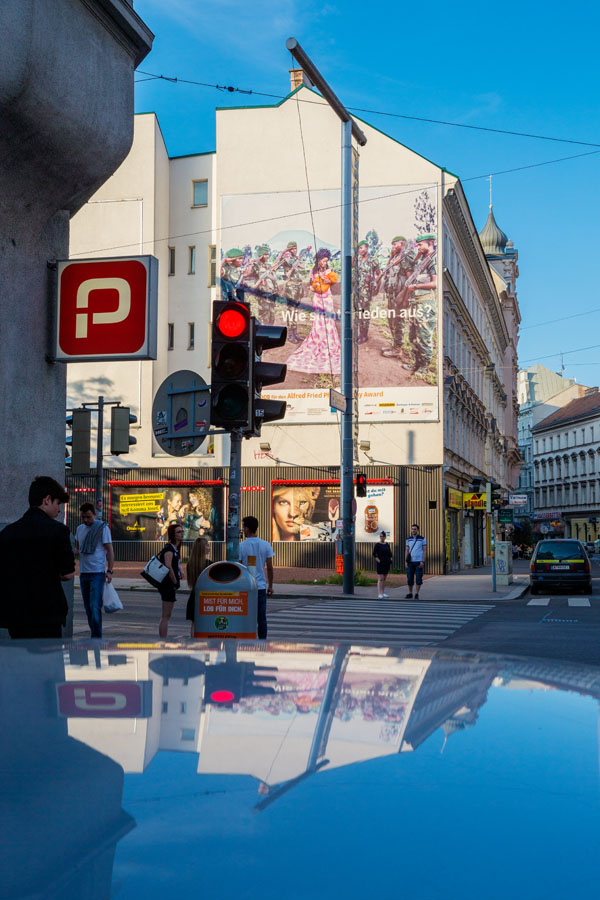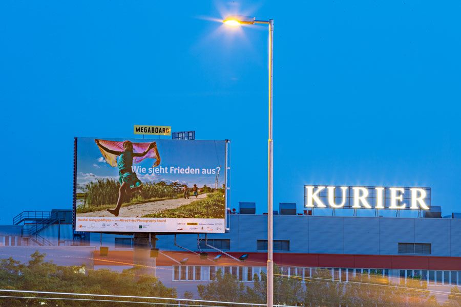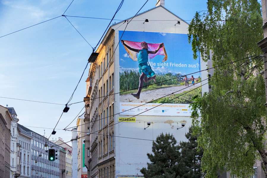 Vienna, Austria Thanks to the generous support of our partner MEGABOARD, four images of the Alfred Fried Photography Award 2015 are showcased in huge format prints of 10 x 10 meters and 5 x 8 meters on firewalls and „Citylight“-installations around the city.