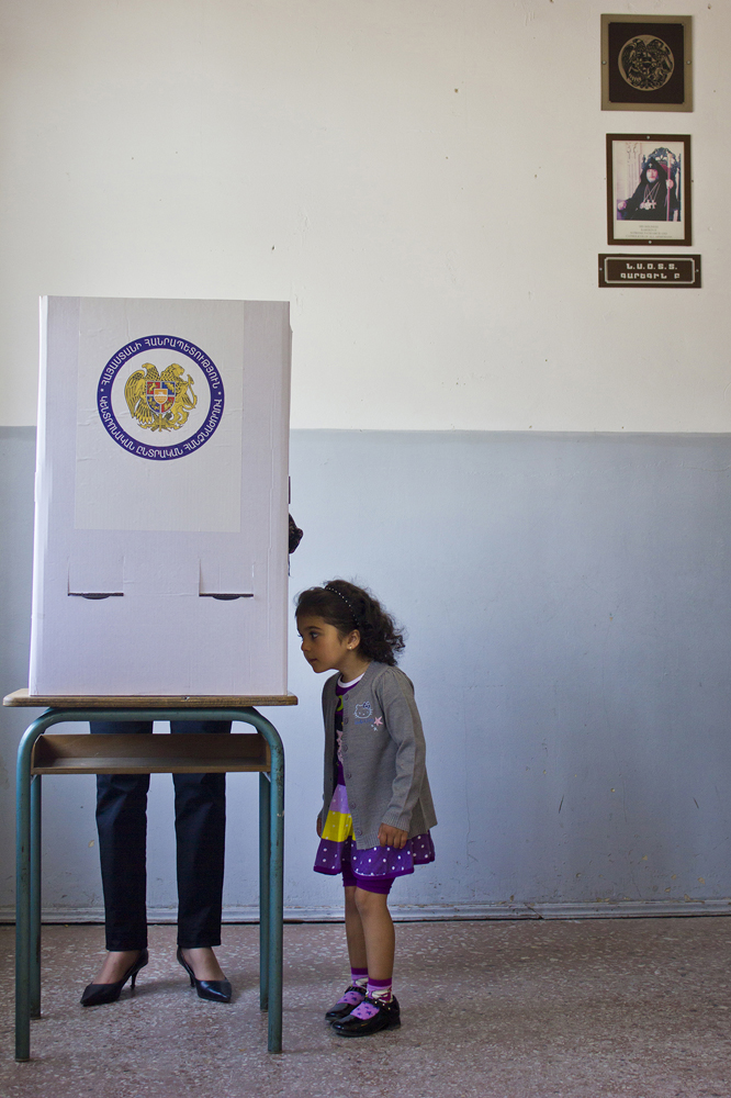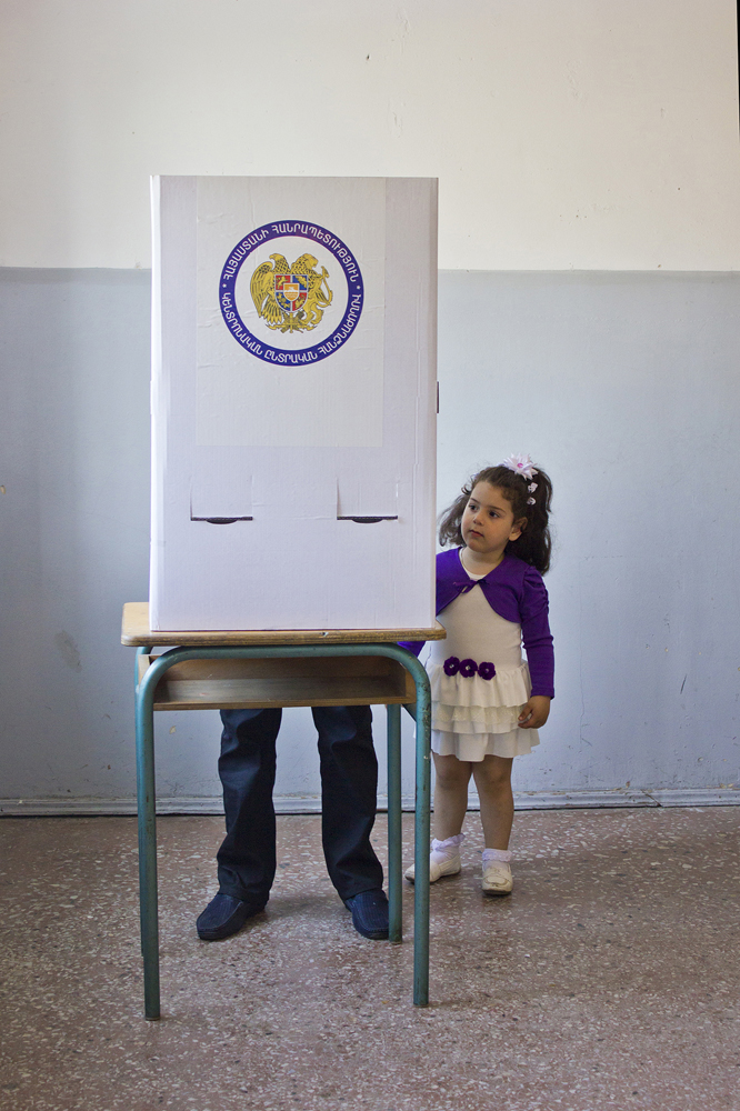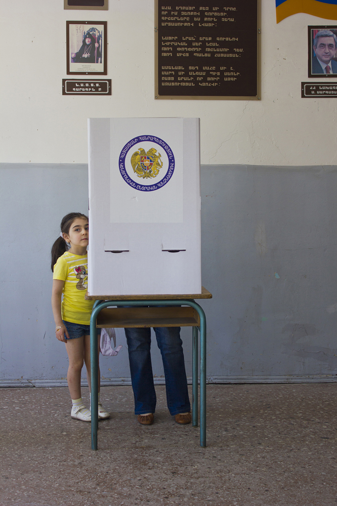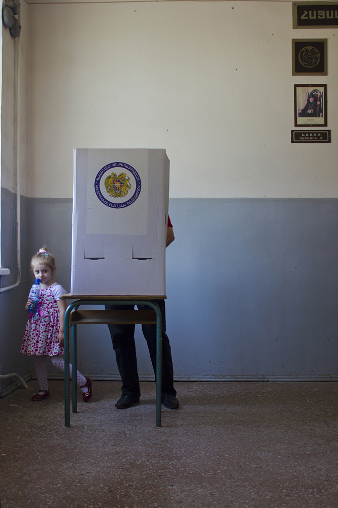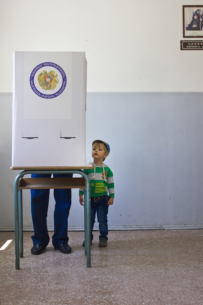 Since Armenia gained it’s independence, no election has ever been regarded as fair. This makes the people angry and aggressive every time it’s election season. In every step of the election you can see demonstrations and meetings. This year I wanted to be a part of the election process and to research and understand the elections. I became an observer for the ‘Presidential Elections of Armenia’ and the ‘Yerevan Council of Aldermen’ elections. The stories I heard before became true with these elections, I realized that my country still has a long way to go before achieving real fair elections. But one thing that gives me hope was the kids, who came with their parents to vote and to learn what and why this was all happening. The elections are now over, but the emotions on the kids faces I will never forget. Each of them was so proud to be there and to be a part of something big. The happiness I saw on the faces of these kids took me far away from the real elections happening at the same moment.