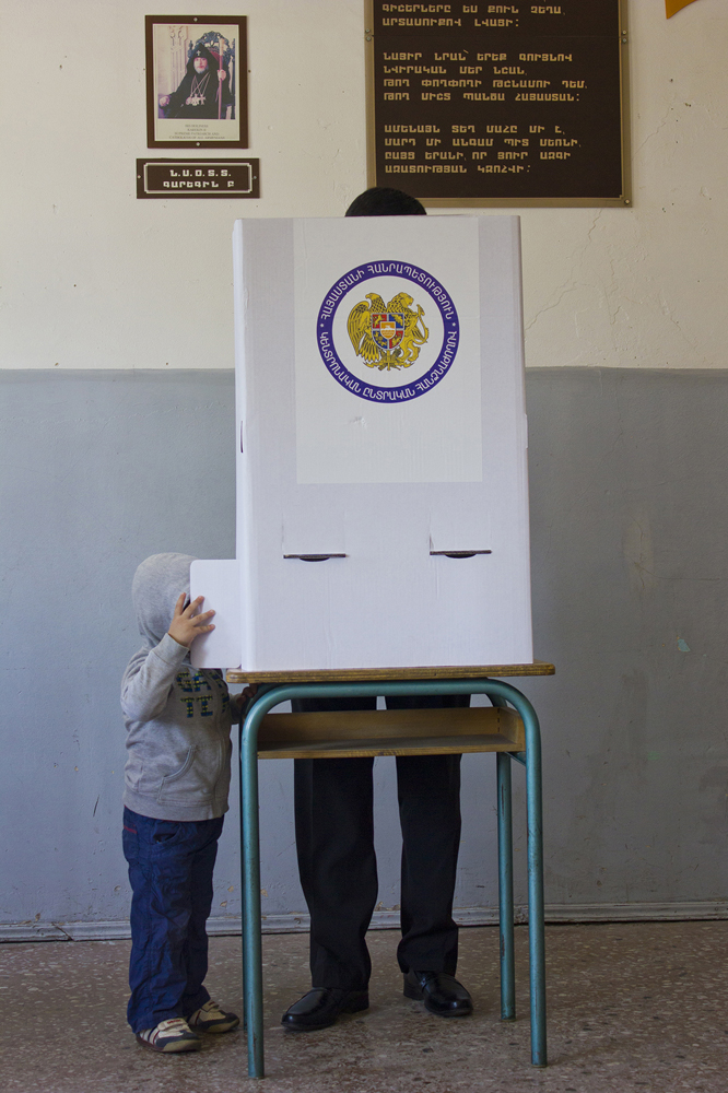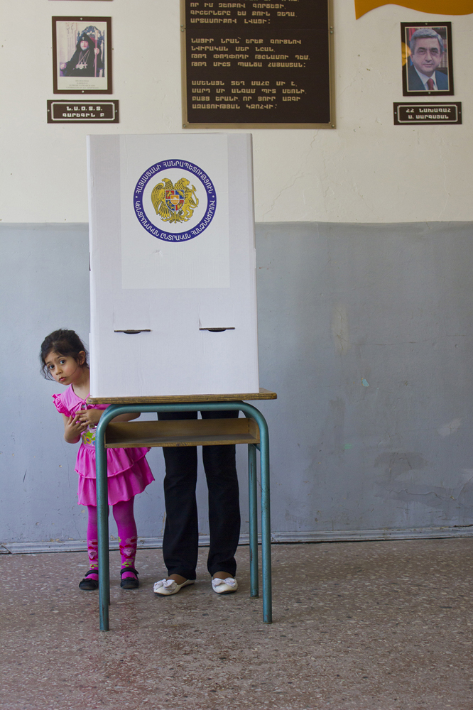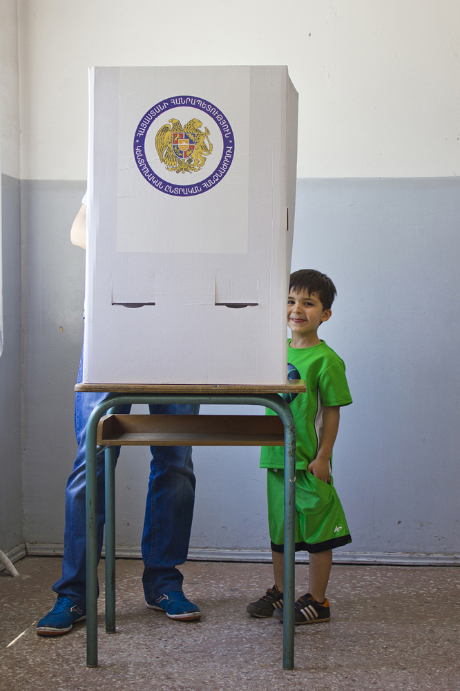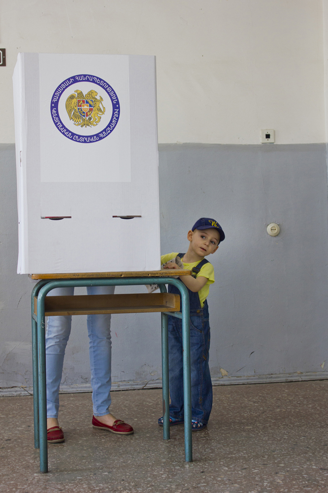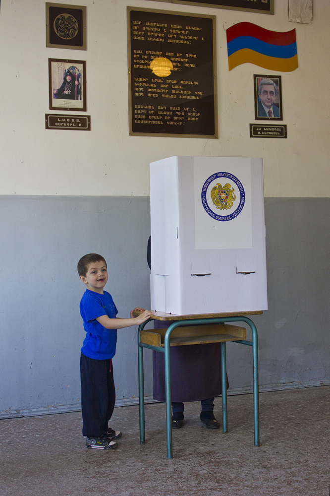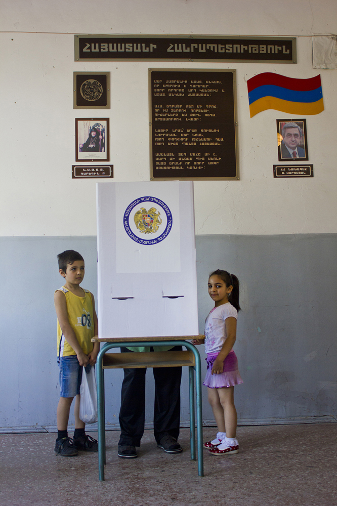 Since Armenia gained it’s independence, no election has ever been regarded as fair. This makes the people angry and aggressive every time it’s election season. In every step of the election you can see demonstrations and meetings. This year I wanted to be a part of the election process and to research and understand the elections. I became an observer for the ‘Presidential Elections of Armenia’ and the ‘Yerevan Council of Aldermen’ elections. The stories I heard before became true with these elections, I realized that my country still has a long way to go before achieving real fair elections. But one thing that gives me hope was the kids, who came with their parents to vote and to learn what and why this was all happening. The elections are now over, but the emotions on the kids faces I will never forget. Each of them was so proud to be there and to be a part of something big. The happiness I saw on the faces of these kids took me far away from the real elections happening at the same moment.