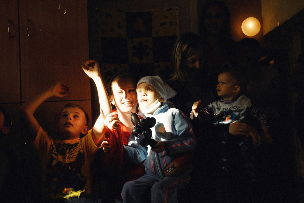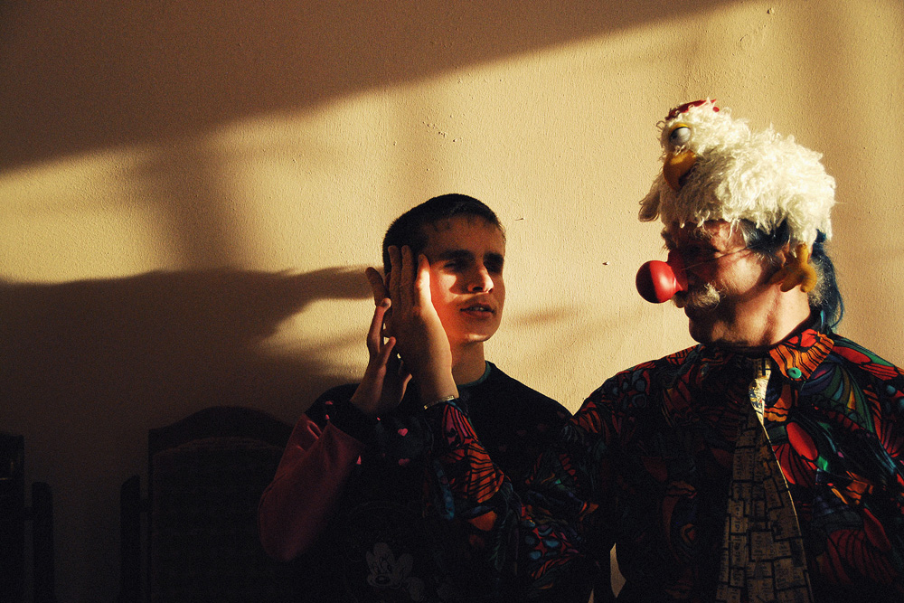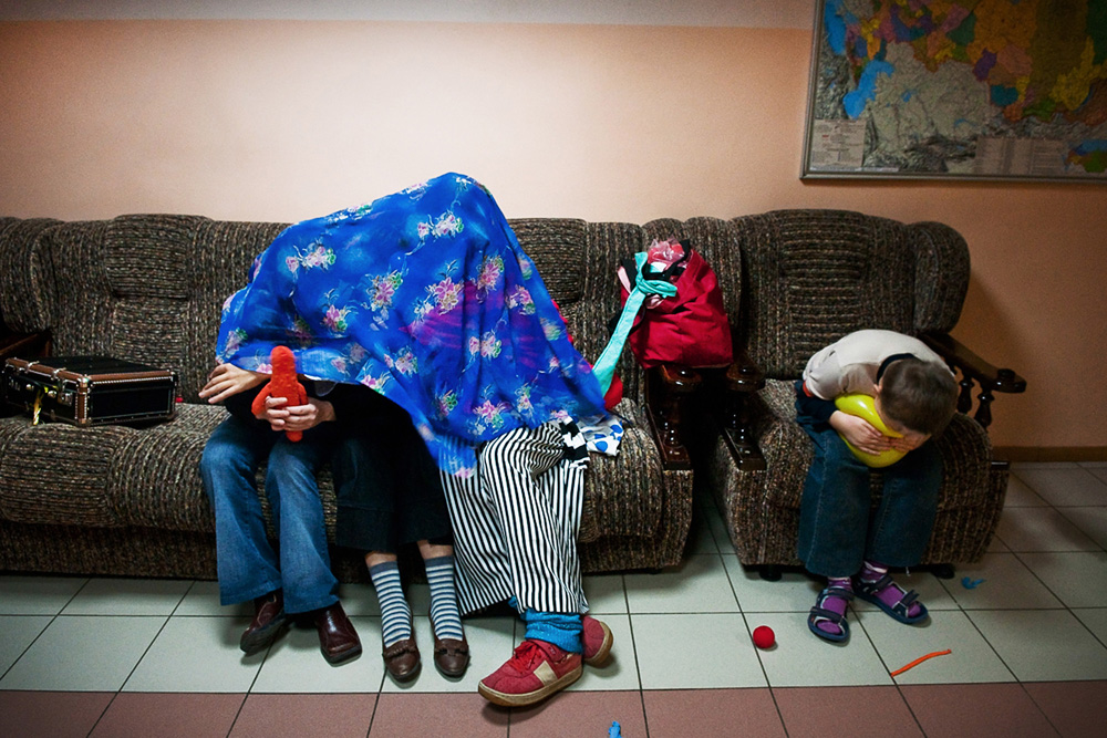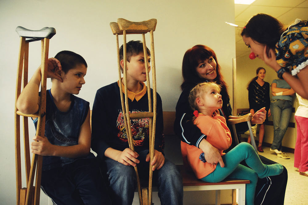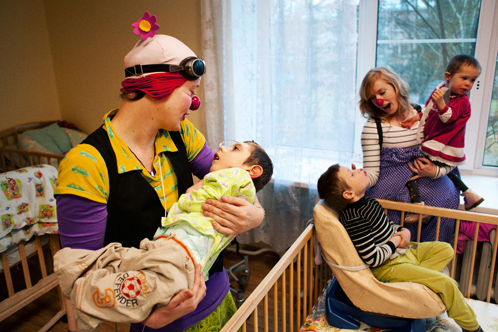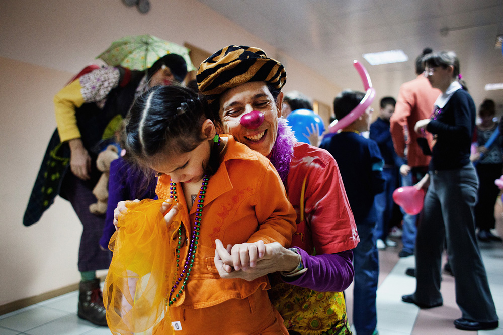 My grandfather always said: “A journey of a thousand miles begins with a single step”. Taking the first step is all it takes. Everyone always has a choice which path to follow. You don’t have to go far to give your love. Just take a look around, and you will definitely find a person in need of your help or your smile at the least. Smiles are often the starting point in a photographers’ dialogue. Foreign volunteers that visit orphanages, hospitals and nursing houses usually don’t speak any Russian, and their smiles become the first instrument they use, the first step in making a connection. Your life becomes easier, when you are no longer afraid of being silly in the eyes of other people. Becoming part of this process by wearing clown costume and smiling at strangers results in a much richer experience, as opposed to just staying behind the lens. It is difficult to recall the faces of each and every man, woman and child that we met, but we do remember the smiles we saw on their faces. By deciding to be an active participant, rather than a documentary photographer, you realize that some of the things that are happening depend on you as well, personally. And not a single moment was spent in vain: every single touch, every sound of laughter, every flash of desire to ease away another person’s pain and give them some comfort – all of them are reflected back around the world. The more you think about these things, the more you want to give and share.