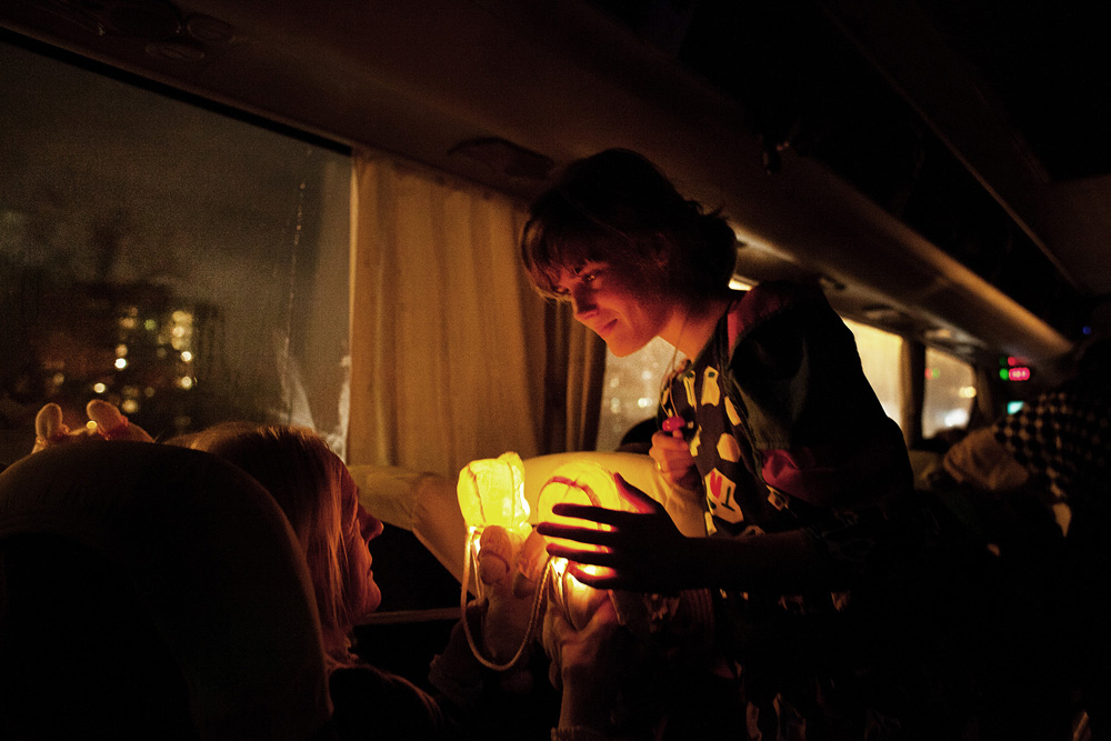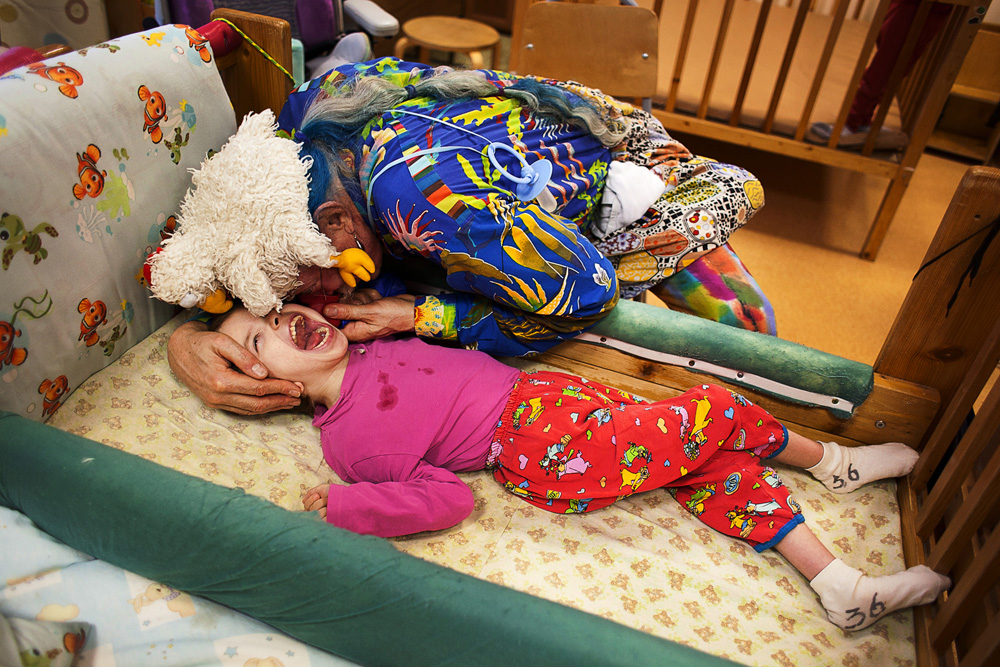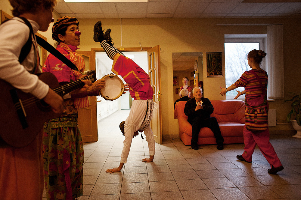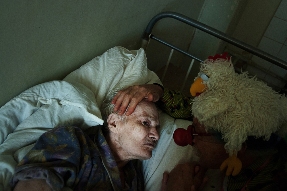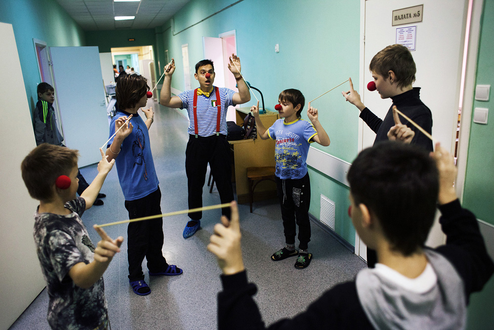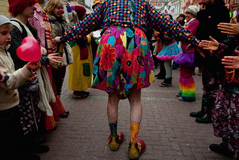 My grandfather always said: “A journey of a thousand miles begins with a single step”. Taking the first step is all it takes. Everyone always has a choice which path to follow. You don’t have to go far to give your love. Just take a look around, and you will definitely find a person in need of your help or your smile at the least. Smiles are often the starting point in a photographers’ dialogue. Foreign volunteers that visit orphanages, hospitals and nursing houses usually don’t speak any Russian, and their smiles become the first instrument they use, the first step in making a connection. Your life becomes easier, when you are no longer afraid of being silly in the eyes of other people. Becoming part of this process by wearing clown costume and smiling at strangers results in a much richer experience, as opposed to just staying behind the lens. It is difficult to recall the faces of each and every man, woman and child that we met, but we do remember the smiles we saw on their faces. By deciding to be an active participant, rather than a documentary photographer, you realize that some of the things that are happening depend on you as well, personally. And not a single moment was spent in vain: every single touch, every sound of laughter, every flash of desire to ease away another person’s pain and give them some comfort – all of them are reflected back around the world. The more you think about these things, the more you want to give and share.