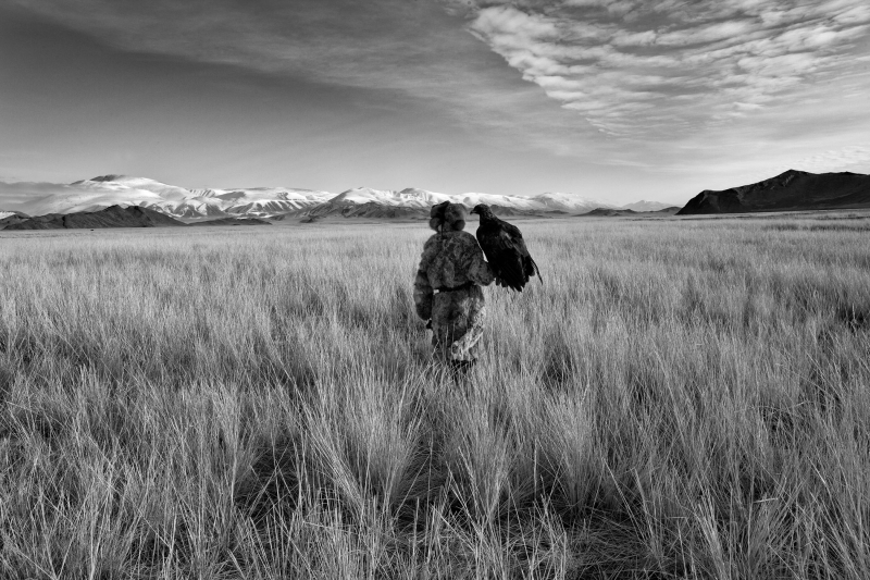 In the remote region which borders Russia, Kazakhstan, Mongolia and China live the last remaining men who hunt with eagles. For centuries Kazakh nomads have roamed the steppe since the days of Genghis Khan. Their ability to hunt with eagles was remarked upon by Marco Polo. The advance of the Russian empire into Kazakhstan two centuries ago swelled their ranks and, when the modern borders were drawn, the Kazakhs found themselves cut off from their homeland and left with little choice but to settle on the arid, wind-scoured plains and foothills of the Altai mountain range of western Mongolia. The golden eagle is a perfect predator, capable of killing a wolf, with a wingspan reaching two metres, beaks built to rend flesh and talons that kill prey instantly by piercing the heart. They look noble, distinguished, just like their masters. And their eyesight is amazing, exponentially better than a human’s, and they seem to burn with a real intelligence and ferocity.