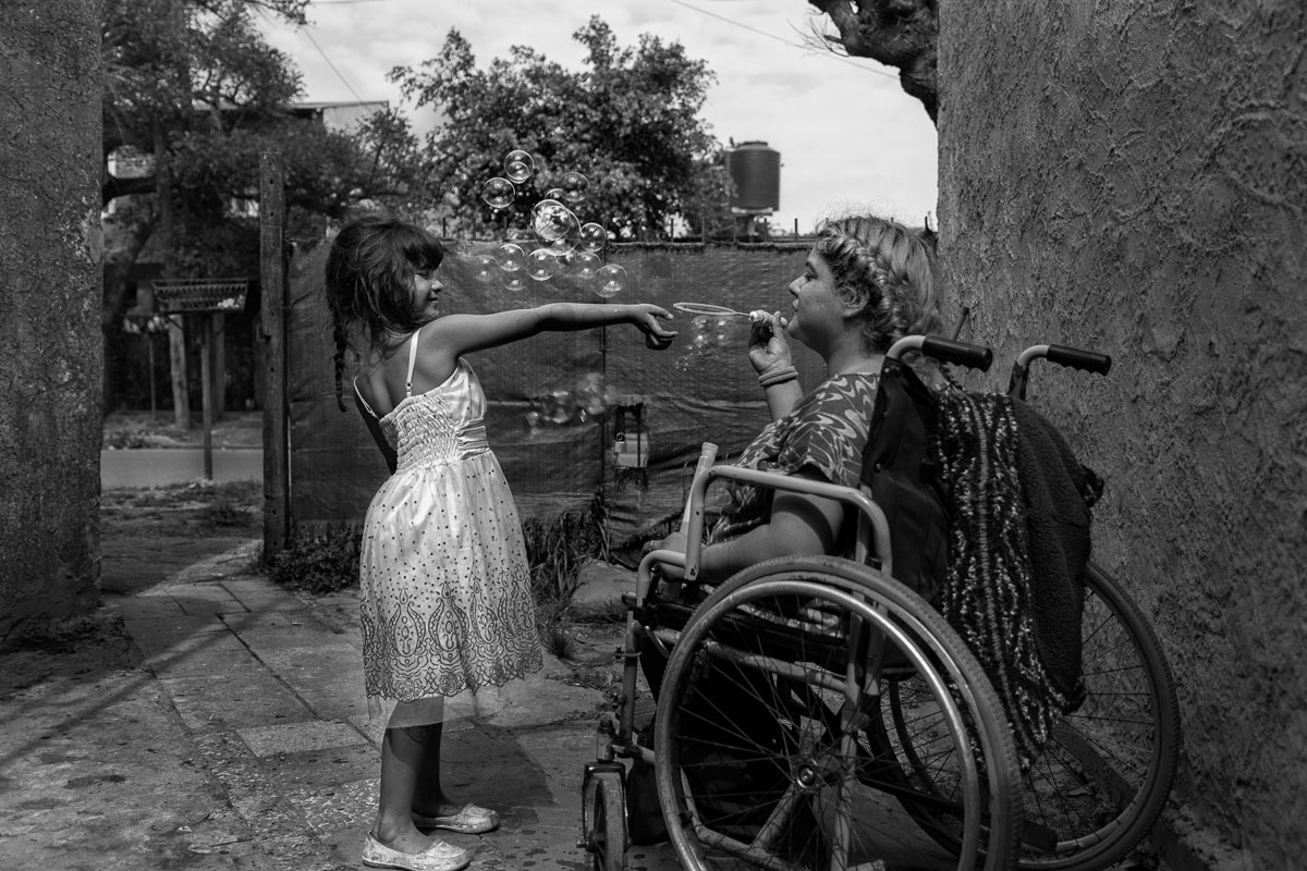 Constanza Portnoy, Argentina: Ángeles – or: What love can save Two illnesses that defy easy explanation have crippled Jorge and his wife Vero permanently. Turning one into a man without arms or legs, the other into a woman bound to the wheelchair. But they found each other, they love each other – the result of this love is their daughter Ángeles. Only images of desperation could emerge from such a constellation, one might think. But the opposite is true. Argentinian photographer Constanza Portnoy found – and captured – a story of courage and care, of bravery and tenderness, of confidence and peace of mind, when she met these three very special people. And of the girl Ángeles she says that this child is “full of light” and equipped “with a deep knowledge of justice and a respect of differences”. Ángeles turns this into appreciation and empathy for and cooperation with her parents. Again: Even when selecting the best image of peace at the Alfred Fried Award not everything is beautiful, nor whole, not everything is joyful that we have seen and chosen here. What we do see, even here and especially in the photographs by Constanza Portnoy, is the power of people to make the most of their fate in an admirable way. Here a war was won, a war that wreaked bodily destruction. But which was not stronger than the peace that Jorge, Vero and Ángeles carry in their hearts. Constanza Portnoy was born in Buenos Aires in the 1980s, years when Argentina lived through a terrible military dictatorship. Human rights, brutally violated during this dictatorship, are her theme and have determined her choice of profession. At the age of 23 she completed her psychology degree at the University of Buenos Aires with a distinction, then worked for many years with children and adults in institutions for the handicapped. She came to photography out of her own accord, travelled through Latin America, took her cue from socially committed photographers like Mary Ellen Mark and Darcy Padilla. In a journal that is as wise as it is touching, about the work selected here, she describes the need to participate in the life of those you photograph before you press the releaser. To be patient instead of giving in to the instinct for capturing the most impressive image. And precisely because she is like she is, has Constanza Portnoy achieved images that made a big impression on the jury. (Text by Peter-Matthias Gaede)