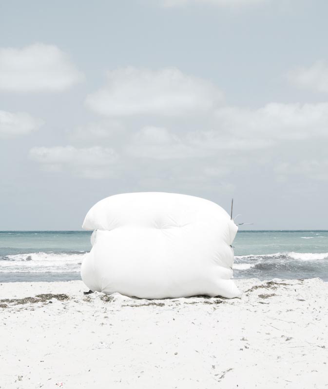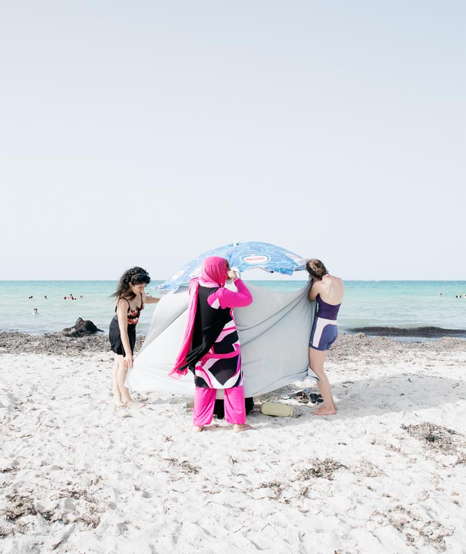 Nomad’s Land When he was on vacation at the Tunisian island of Djerba, he looked out of the window and saw them: filigreed fragile buildings in the sand. Airy, short-lived constructions, minimalist architecture. They reminded him a bit of the ‘objects trouvés’ of the surrealists. And what were they in fact? Improvised one-day accommodation, temporary homes, nomadic installations of local beach goers, brought here on motorbikes, cars, donkeys. Now one might ask what is the peace aspect of this picture apart from the peace which the skin is supposed to make with the scorching sun. But for Yoann Cimier this was not the question. He discovered true poetry in these rudimentary homes, the carefreeness of their builders, the diversity of their creators. The beauty of lucid moments and days quite innocently spent by the seaside – which, as we know, has turned into a mass grave in other parts of the world. Here, however, forgetting is allowed. Peace. Yoann Cimier, born in the French town of Angers, completed a training to become a publishing house clerk, and he is a self-taught photographer and co-publisher of various literary works; he has lived in Tunisia since 2007. ‘Nomad’s land’ as he called his award-winning work, was published by the Tunisian publishing house Lalla Hadria Éditions and was already among the finalists of the Oskar Barnack Award.(Text by Peter-Matthias Gaede)