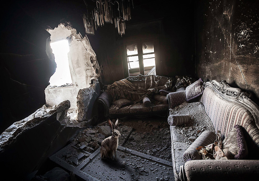 This serie is first of all a personal need of expression, towards the recent events evolving in the middle-east, in this project regarding the protests and the ongoing civil war in Syria. In every image a wild animal is put into a warzone, in the places affected by bombardments and by prolonged fighting. The presence of the animal wants here to represent the healing of these places.