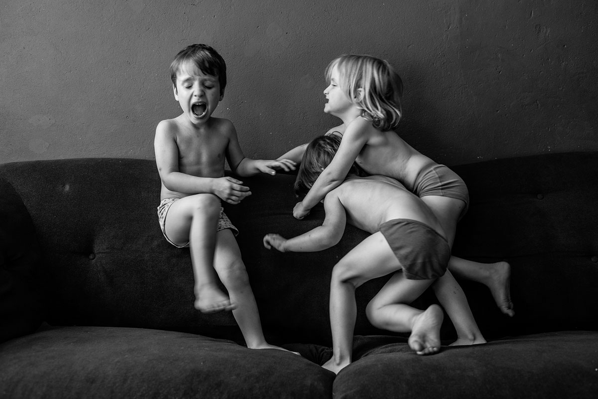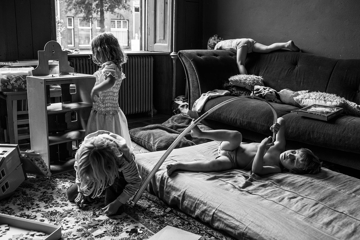 When I met Tex, Morris and Soesja for the first time in 2015, they were three years old and would turn four the next day. After a shoot 'we would like to have a family portrait', I could not let go of them anymore. And so a new series started. The dizygotic triplets Tex, Morris & Soesja (2011) live with their older brother Roefie and their mother and father in a colourful house in Utrecht, an average Dutch town. Every kid is trying to find his or her own way, looking for his or her identity. The boys versus the girl. The girl alone. The boy(s) who likes to wear pink and dresses. But not always. It happens, it is allowed.