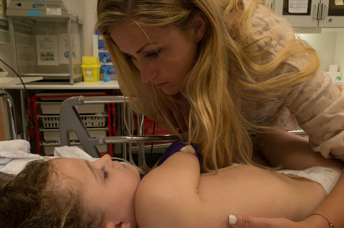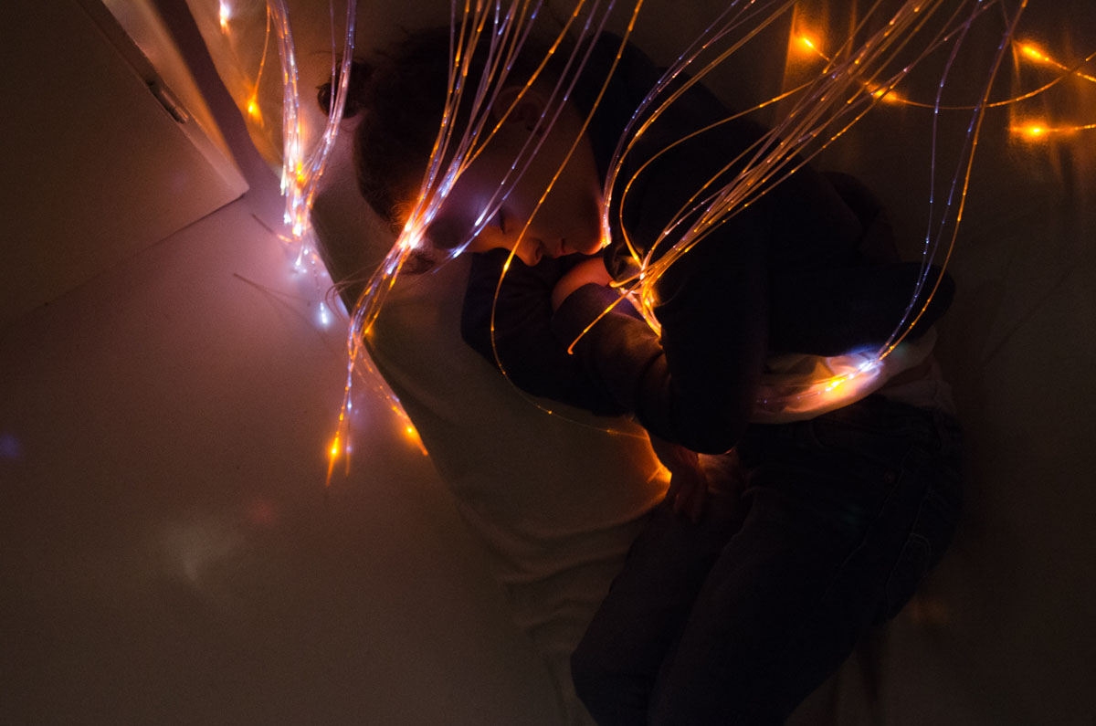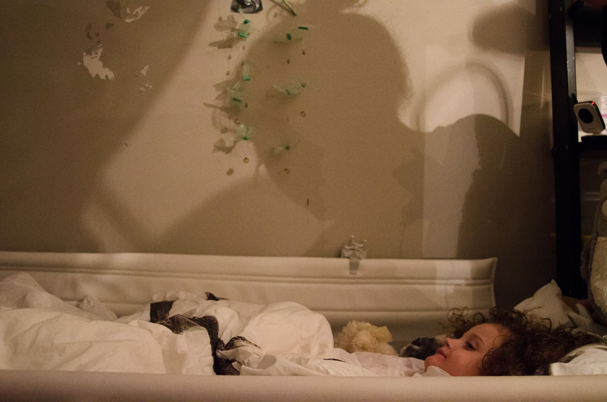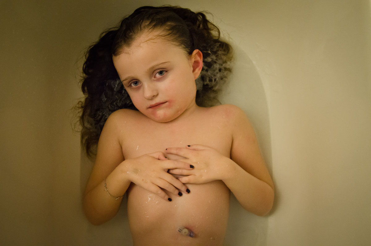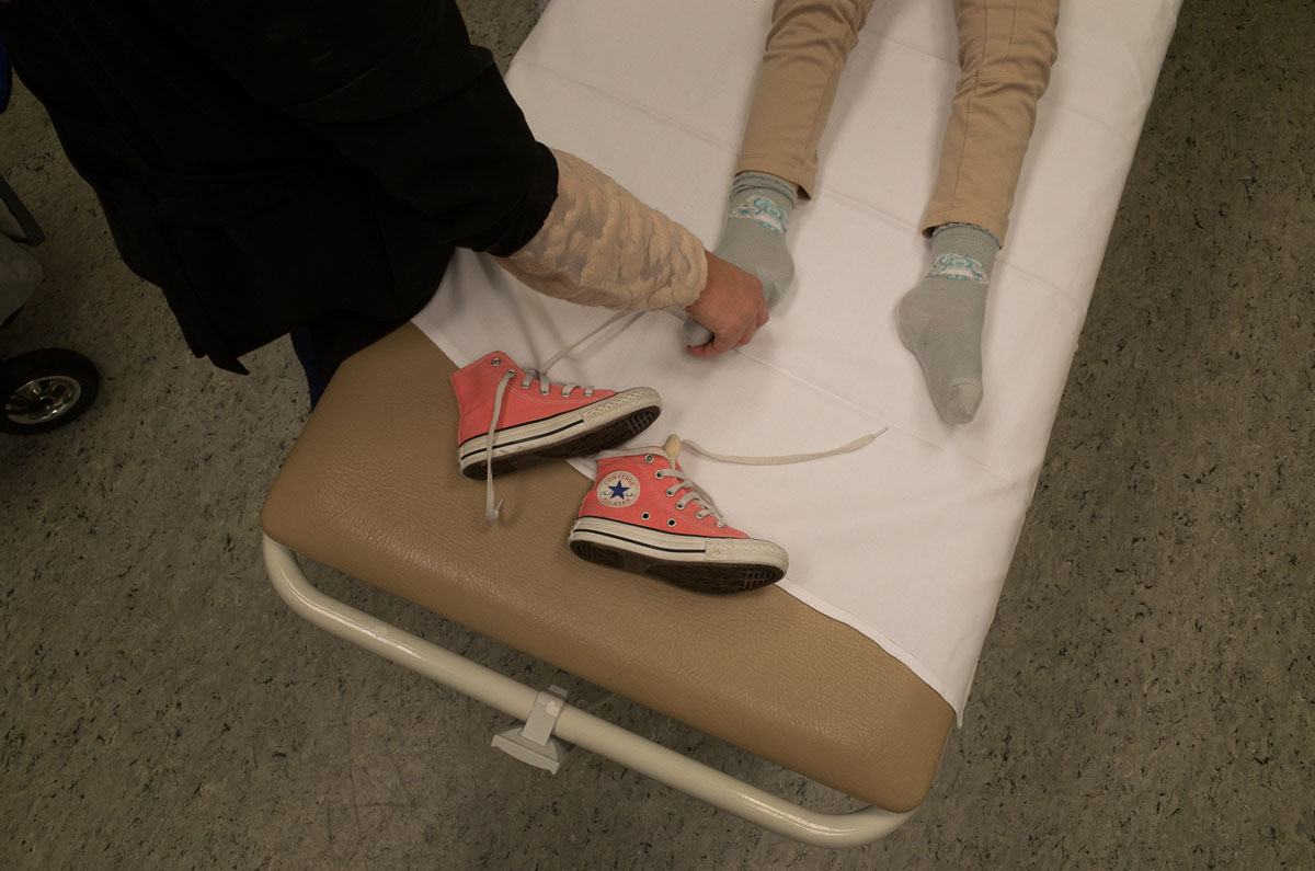 The light penetrates the room, giving the floor highlighted patterns from the curtains. In the corner, a red light is blinking, and numbers indicating body activity. Just opposite there is a big teddy bear and a princess crown. Eva Natali lives just outside Oslo, in Holmlia, together with her mother June. In the nights Eva needs to be monitored, in case of a seizure attack. She suffers from a rare genetic defect called Grin 1, and heavy epilepsy triggered by it. This photo-essay is about the bond, strength and love between mother and child. And how they show it to each other.