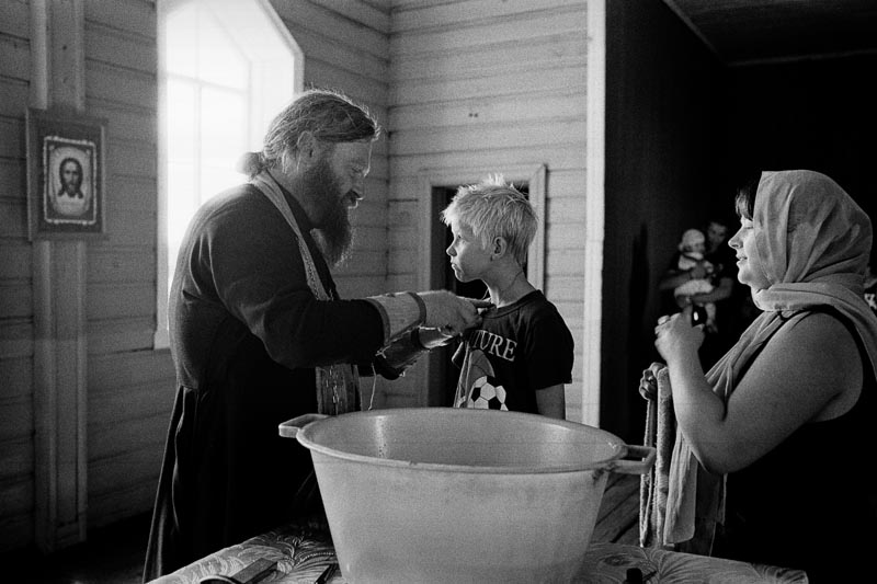Fifteen years ago three rebellious friends from Moscow were strolling trough the North searching for the meaning of life until they ran into the beautiful village of Kolodozero. In 2001, they started rebuilding the local church which was burnt in 1977. One of them, the red-haired punk Arkady Shlykov stayed there forever and became a priest in the new church. At first the stern locals met the rockstar-resembling priest with much suspicion, but later on came to love him wholeheartedly. Thanks to Arkady and his willingness to help the village 'came to life'. He became its heart and soul, motivated the people and started a new phase in their developement. A year ago new arrivals established a cow farm that creates additional jobs for local inhabitants.