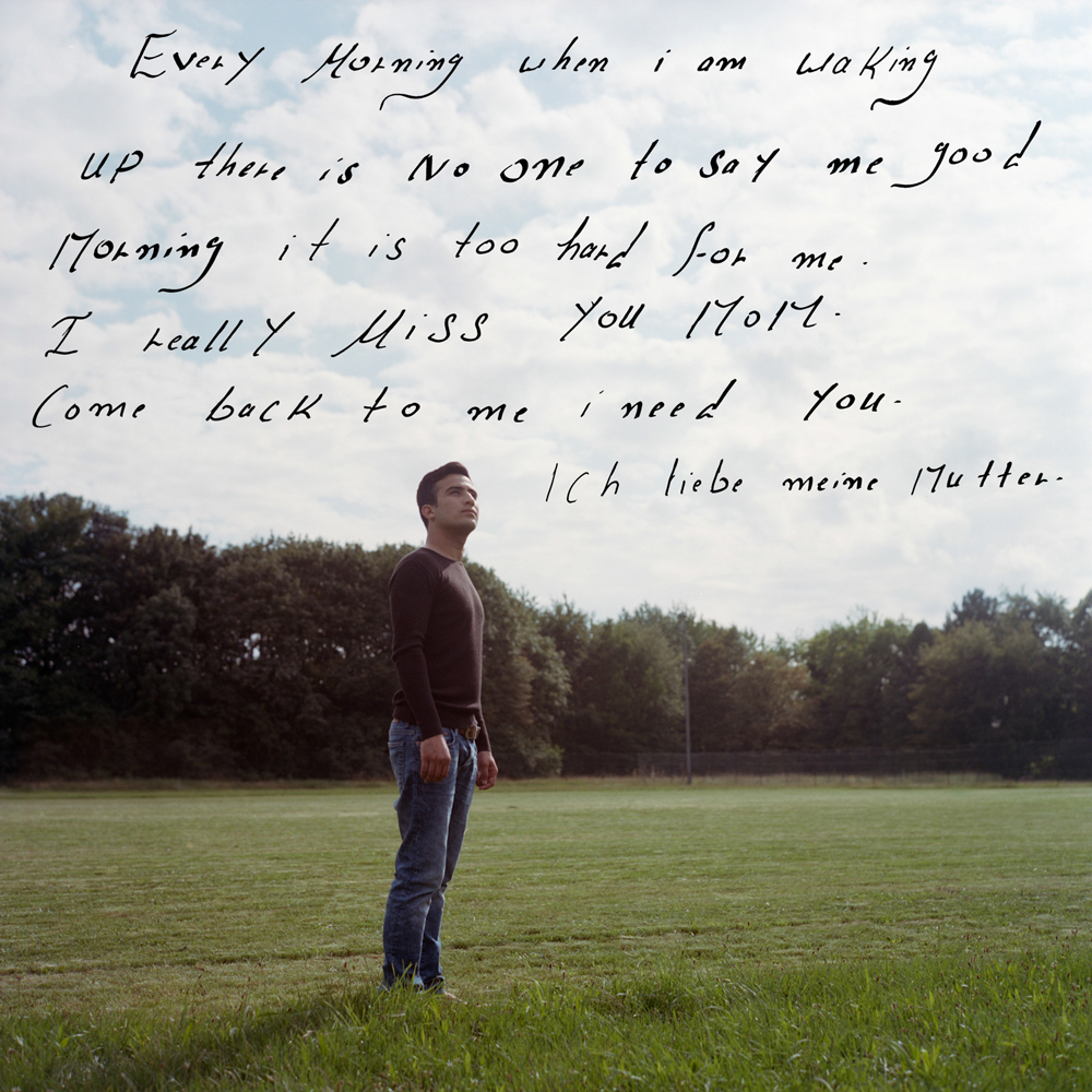 For the portrait project STATUS we've asked refugees to find a place at Bayernkaserne, they either just like or find representative for the place and situation there and also to implement some additional space for comments, letters, or messages they will be able to add after the picture is taken.