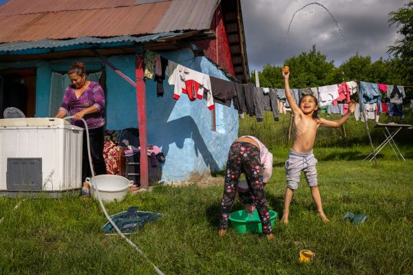 Alexandria (7) and Alexia (6) are playing with water and soap in the garden at their grandparents‘ house. Both of the children‘s parents are currently working abroad. Grandma Mia has had a lot of laundry to do since the arrival of her grandchildren, but she finds it important that her grandchildren can play freely despite the concerns about missing their parents. Mia: „I enjoy seeing them have fun. If that means I sometimes have to wash mud out of their clothes for days on end, that‘s part of it. Children should be able to be children.“