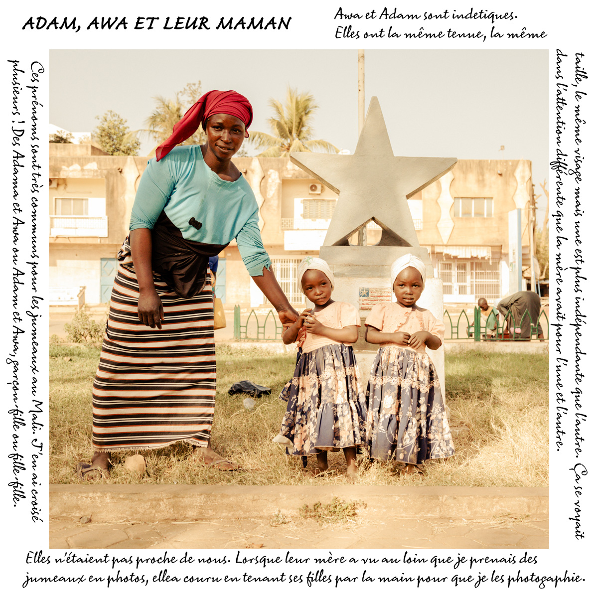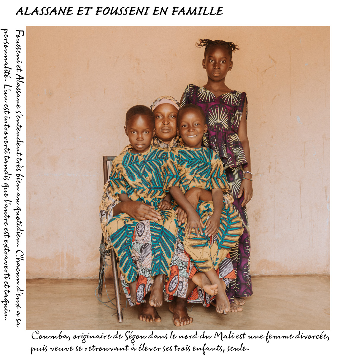 My work began in Bamako, Mali, where twins are called filani. I met these families with the help of my friend Ibou,