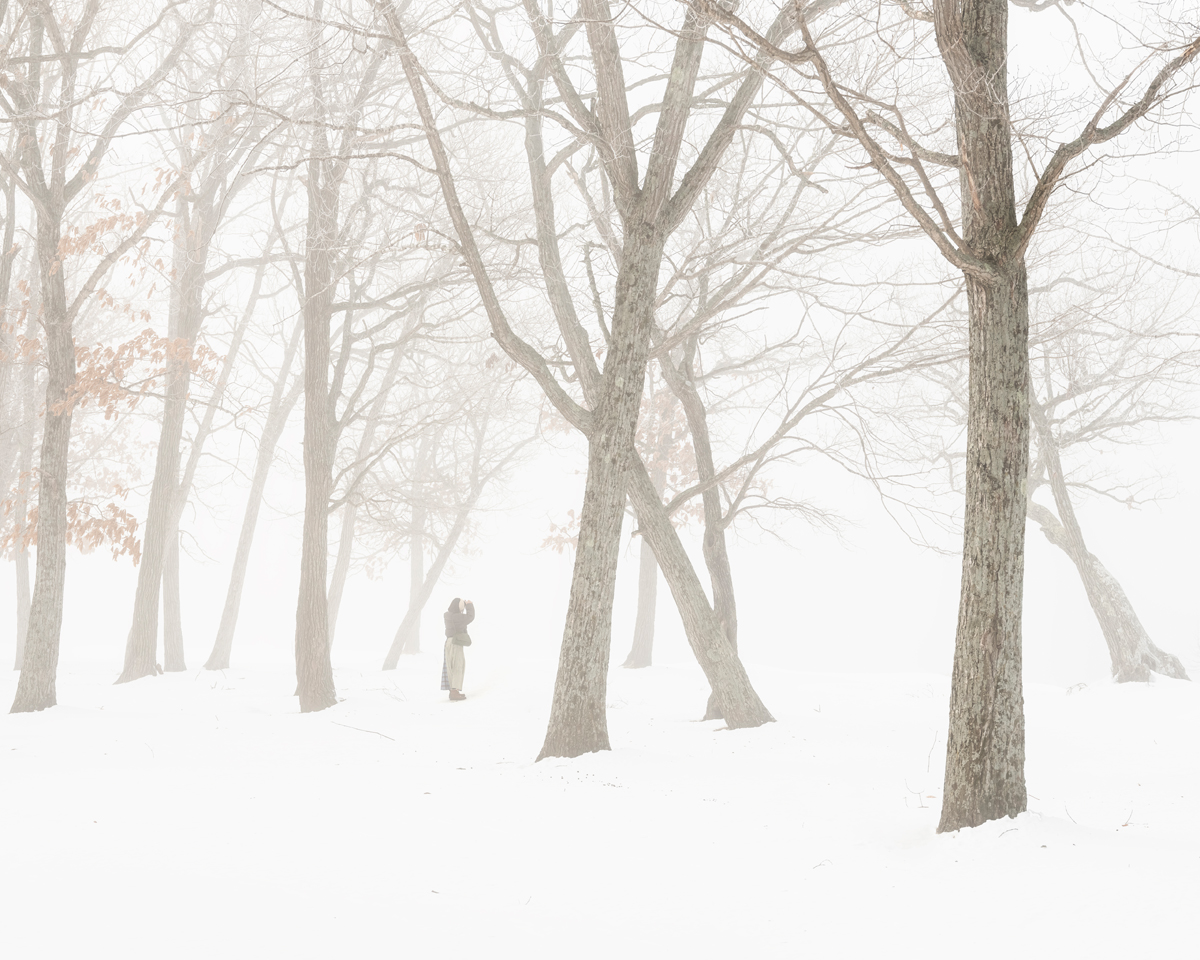 To achieve this he developed his own photographic style, where he takes his photographs only in particular light and weather conditions, utilizing snow, fog and diffused light from overcast skies. The muted light results in a lighter, more painterly look that features less realistic details. His approach also makes use of some special photographic techniques like overexposure and sometimes long-exposure. By doing so he is looking for ways to make the unspeakable, underlying elements of his images tangible or at least palpable for the viewer and to transfer his images into the realms of metaphoric meaning and suggestions. Landscapes and objects become ‚projection surfaces‘ for his thoughts and feelings, as well as for those of the viewer, who is always invited to actively enter into a reflective dialogue with the images.