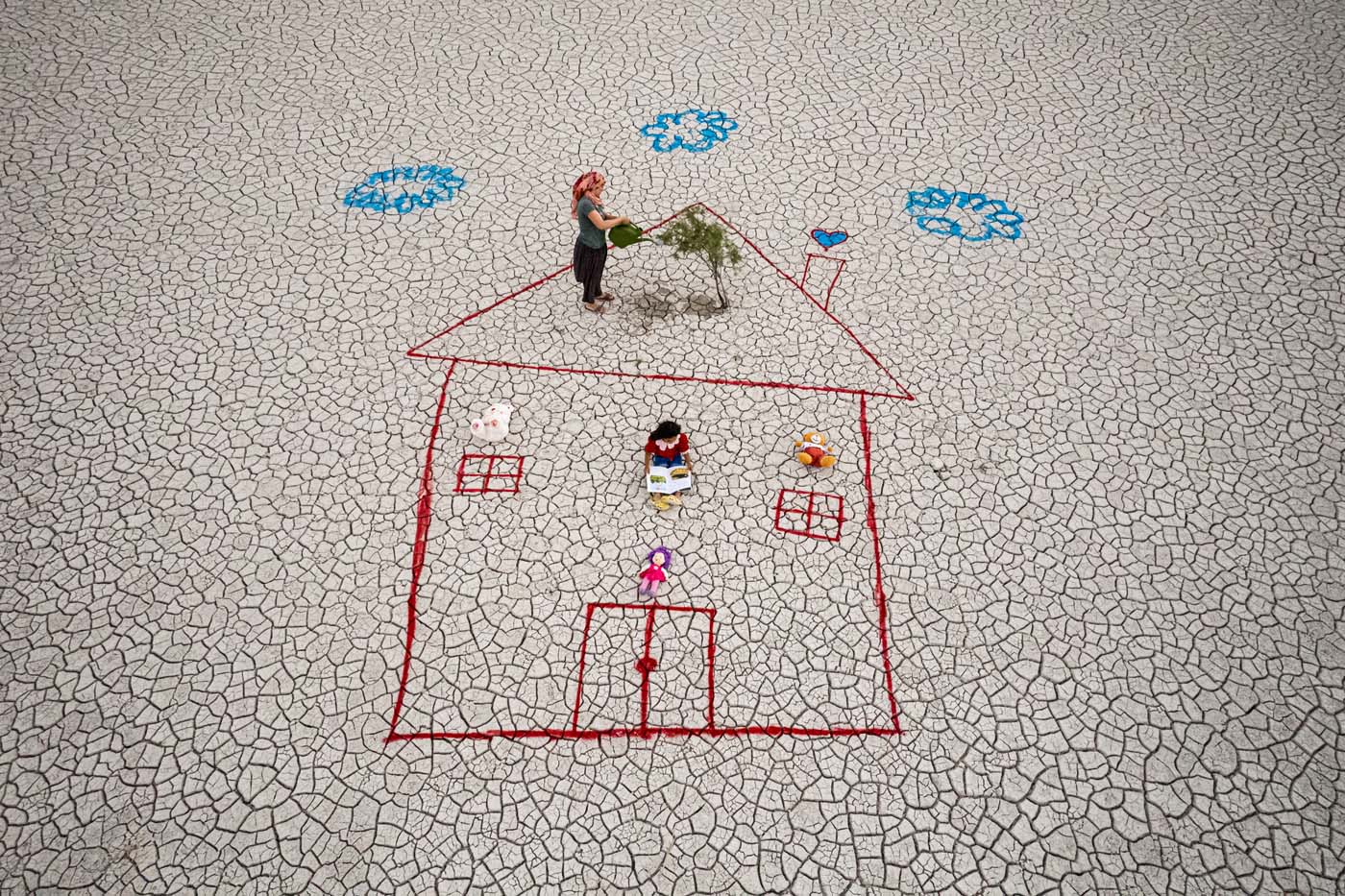 Have you ever thought about how our children‘s playgrounds will turn into a dry world? When that time comes, grab some spray paint, create your own ecosystem and tell the world that drought can be prevented with peace.