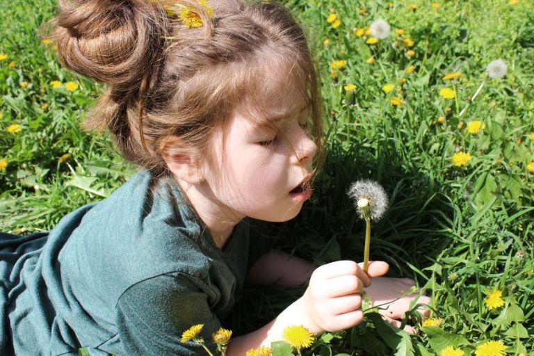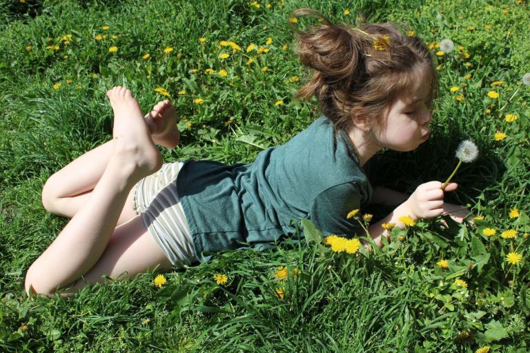 In this photos, my sister lies barefoot in the grass, surrounded by dandelions, soaking in the calm of nature.